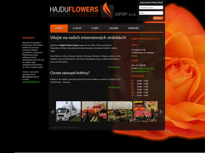 Spustili jsme stránky mezinárodního dodavatele květin Hajdu Flowers Export s. r. o. se sídlem v Praze. Dodává více než 50 různých odrůd růží a 120 druhů květin z celého světa. E-shop zatím nebyl spuštěn. Stránky Hajdu Flowers naleznete na www.hajduflowers.cz.
