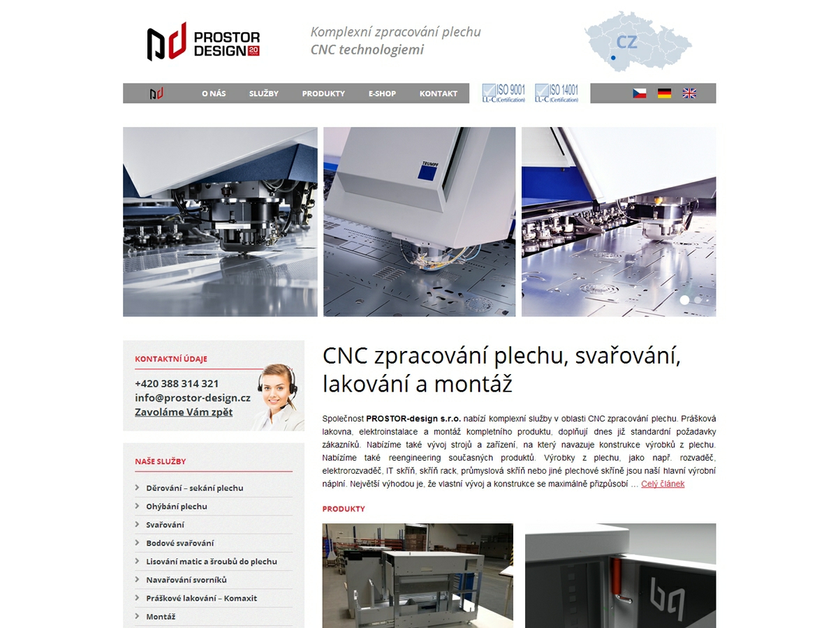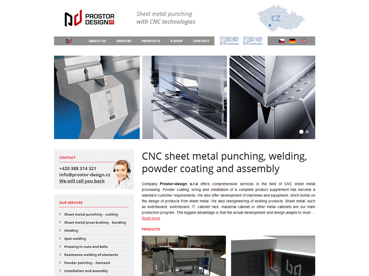 V květnu jsme spustili stránky www.prostor-design.cz společnosti PROSTOR-design s.r.o., která se zabývá zpracováním plechu, montážemi a elektroinstalacemi. Tyto stránky využívají redakčním systém Wordpress, používají responsivní design a jsou tedy uzpůsobené pro prohlížení na všech stolních i mobilních zařízeních. Stránky byly navíc vytvořeny jako multisite instalace ve třech jazykových mutacích a sdílejí společné programové jádro, což usnadňuje jak správu a aktualizace, tak i spoří webový prostor.
