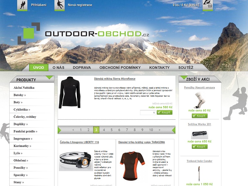 Již v říjnu 2011 jsme spustili jsme další skvělý e-shop. Daší z českých obchodů s outdoor vybavením se sídlem v Netolicích Vám představuje své stránky na www.outdoorobchod.cz. Zde najdete v příjemném a přehledném uživatelském rozhranní nepřeberný výběr outdoor vybavení, potřeby pro cykloturistiku, stanování, horskou turistiku, pobyt na vodě včetně velkého výběru textilových doplňků. Ale co je nejdůležitější, krom široké nabídky také nabízí skvělé ceny a levněji nikde jinde už jen tak nekoupíte! Při objednávce od 2000 Kč navíc máte dopravu zcela zdarma. Systém je navíc navržen tak, že uživatel si může přidávat, měnit i mazat položky bez naší asistence.