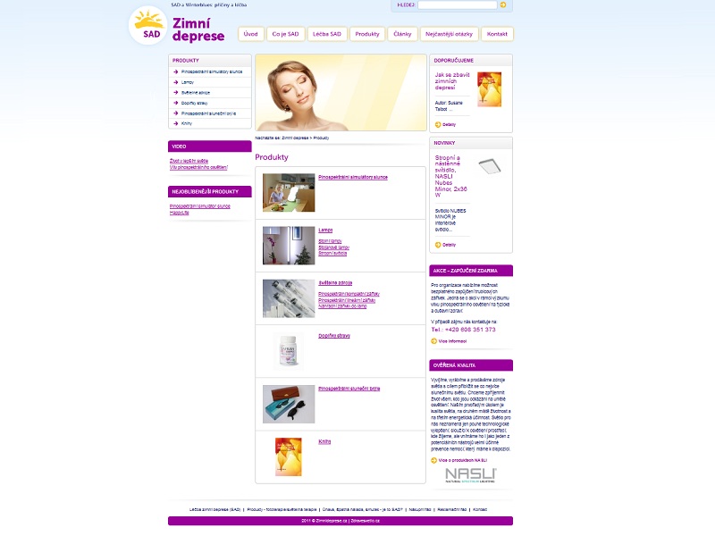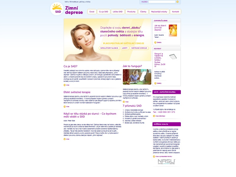 "Kam nechodí slunce, tam chodí lékař. Ale počkat, my už si vlastně můžem pořídit i umělé slunce!" I takto by se dal popsat tento web. Na těchto stránkách naleznete informace ohledně léčby a zmírnění zimních depresí pomocí světelné terapie. Jedná se o solární studio, kde naleznete popis všech jejich služeb. Lze také zakoupit jejich produkty jakožto léčebné pomůcky. Stránky zimni-deprese.cz najdete na www.zimnideprese.cz.