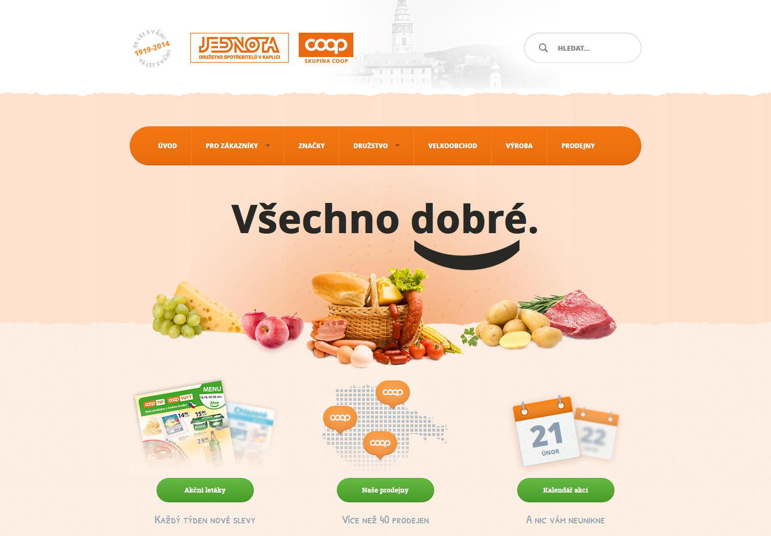 Webové stránky Jednota COOP využívají nejmodernější technologie HTML5 a CSS3 design. Jejich jádrem je moderní redakční systém a při tvorbě jsme kladli důraz na UX použitelnost a moderní grafický design, pro který se stala základem vstupní analýza projektu a cílová skupina zákazníků spotřebního družstva.