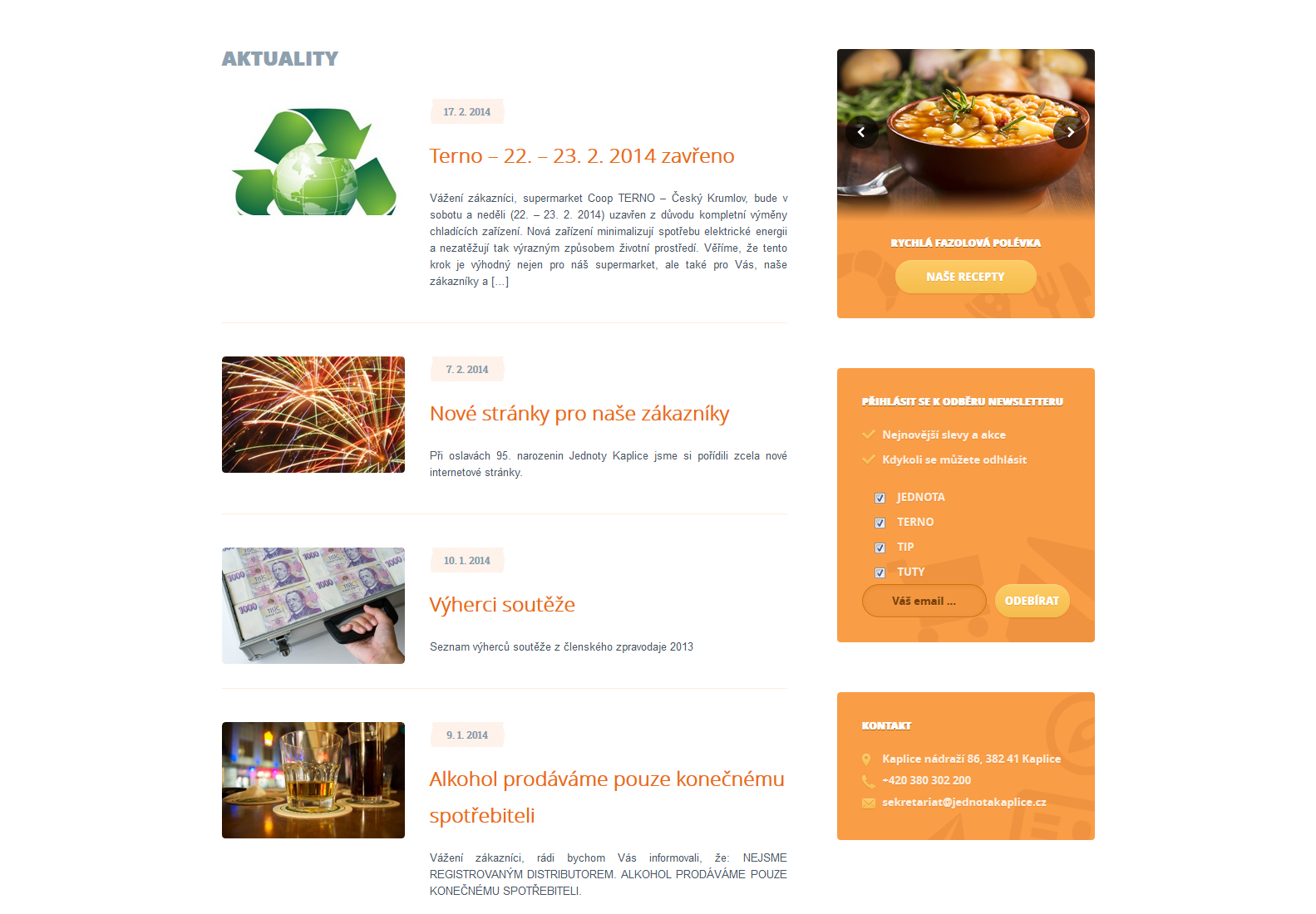 Na základě vyhraného výběrového řízení jsme připravili a spustili inovovanou webovou prezentaci spotřebního družstva Kaplice - www.jednotakaplice.cz.